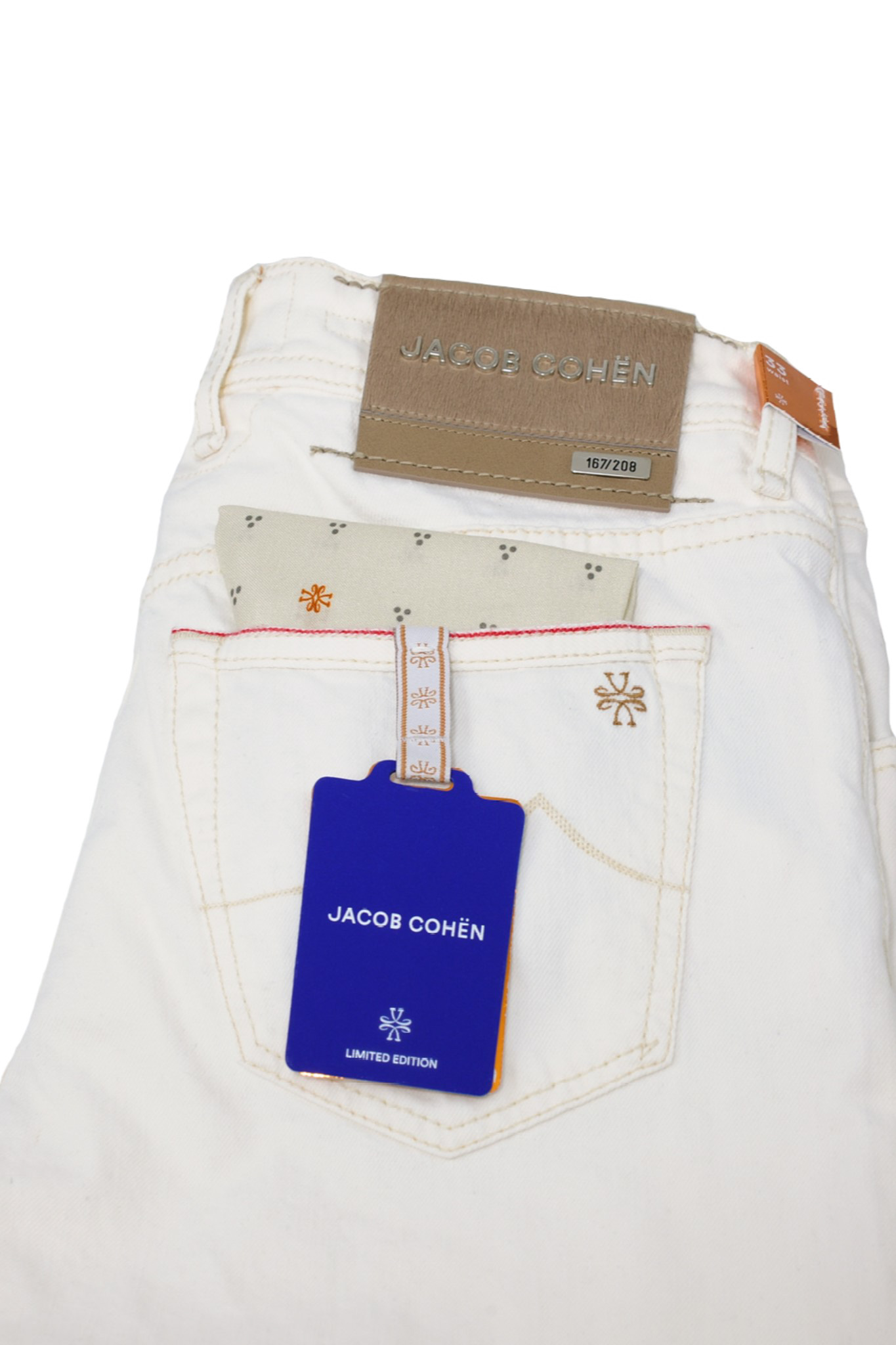 Es ist gut zu wissen, dass alle Jacob Cohën-Hosen in ein und derselben Länge hergestellt werden, es gibt also keine Wahl der Länge. Deshalb liegt jeder Hose eine Spule mit Originalgarn bei, damit sie bei Bedarf gekürzt werden kann.